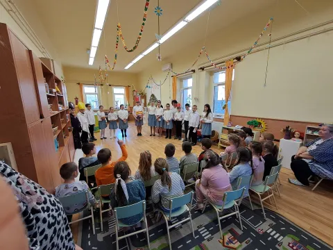 A gyerekek verses-dalos műsorral készültek, s csalogatták az óvodásokat az iskolába.