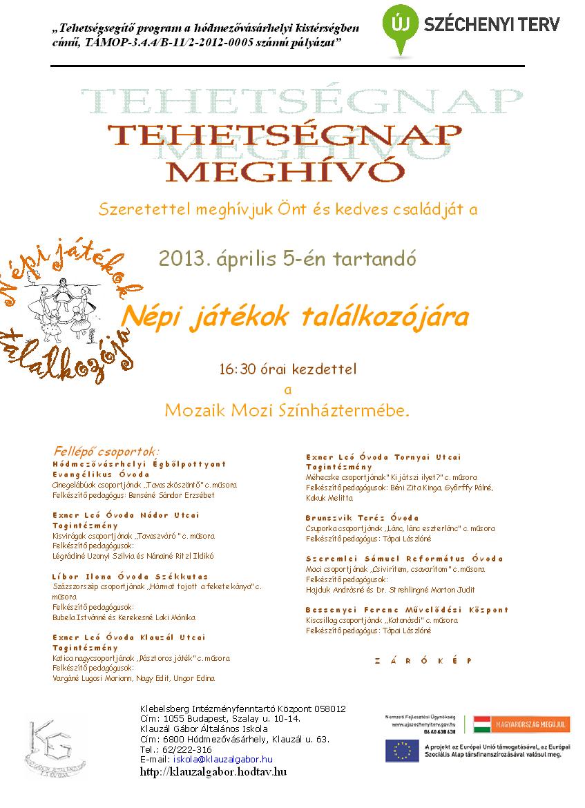 Szeretettel köszöntjük Önt a Hódmezővásárhelyi Tankerületi Központ Hódmezővásárhelyi Klauzál Gábor Általános Iskola oldalán. Reméljük, hogy folyamatosan bővülő lapjainkon megtalálja a keresett információt!