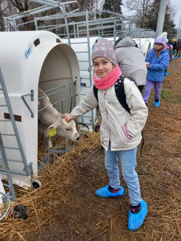 Iskolánk 4. évfolyama látogatást tett a Mezőhegyesi Ménesbirtokon, ahol értő vezetés mellett megtekinthették az iskolát és a modern sportcsarnokot. Betekintést nyerhettek a lovászképzésbe is. Nem csak végig mehettek az istállókon, de egy diák be is mutatta nekik, hogy edzés után, hogy szerelik le a lovat. A lovarda után a tehenészetbe vezetett az út. A kötelező védőintézkedések után beléphettek a telepre. Megnézhették, hogy milyen körülmények között tartják a marhákat, milyen hatalmas tartályokban gyűjtik a tejet. Megtudhatták, hogy a mezőhegyesi tejet a Mizohoz szállítják. Útjuk végén megsimogathatták a bocikat.