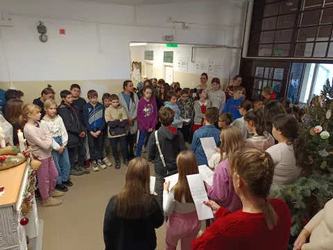 A gyerekek először osztályszinten ismerkedtek meg az advent jelentésével, történetével és hagyományaival. Majd a 6. a osztályosok által összeállított rejtvény sorait töltötték ki a megszerzett ismereteik alapján. A nap folytatásaként kézművesfoglalkozásra került sort. A gyerekek négy helyszínen különböző kézműves technikákat alkalmazva készíthettek karácsonyfadíszeket, karácsonyi képeslapokat, kis ajándékokat. A délelőtt zárásaként közösen feldíszítettük az iskolai karácsonyfánkat azokkal a díszekkel, amelyeket a gyerekek készítettek. Majd az iskolai énekkarosok és a 6.b osztályosok teremtettek meghitt, karácsonyi hangulatot a karácsonyfa körül előadott kis műsorukkal.