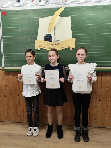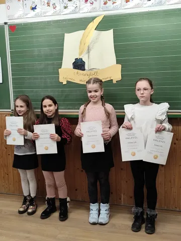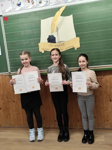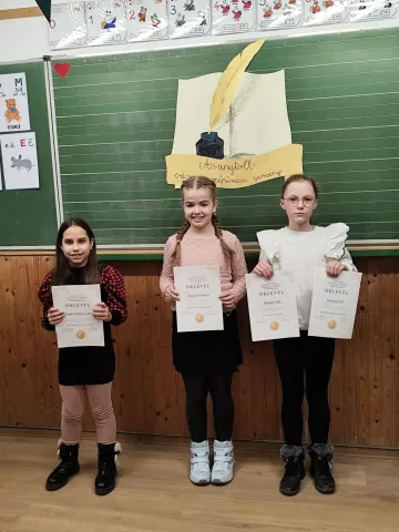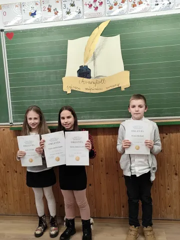 Iskolánkban 2025. január 10-én délután újra megrendezésre került az Aranytoll szépírási verseny. 56 lelkes kisdiák jelentkezett, hogy megmutassa formás betűkkel írt sorait. A szervezők kihangsúlyozták, hogy a mai rohanó világban milyen érték, ha valaki szépen tud írni. Pap Eva gondolatát idézném: „Akinek szép a kézírása, annak szép a lelke is. „